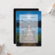 Wedding invitation with a beautiful photograph of a wooden pier stretching out over a calm lake. Night sky covered with stars and a beautiful full moon.