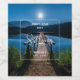 Wine making bottle labels with a beautiful photograph of a wooden pier stretching out over a calm lake.