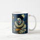 Melancholy Pierrot clown illustration in moonlit street scene on ceramic mug, ideal for collectors, art lovers, and circus fans.