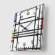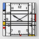 Clock with a black square clock face inspired by Piet Mondrian's Composition 10 De Stijl modern art painting.