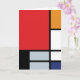 This oil on canvas from 1920 shows a composition with black, red, grey, yellow (orange), and blue blocks in a style that came to be known as De Stijl or Neo-Plasticism.