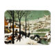Pieter Bruegel Hunters in the Snow magnet. Oil painting on wood from 1565. Pieter Bruegel the Elder was one of the great painters of the Northern Renaissance. Hunters in the Snow is one of the artist’s most famous paintings. The work features hunters and their hunting dogs moving over a hill coming back from a hunt towards a snow village with townsfolk skating on frozen ponds. A great gift for fans of Northern Renaissance Art, Pieter Bruegel, and Famous Art.
