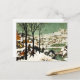 Pieter Bruegel Hunters in the Snow postcard. Oil painting on wood from 1565. Pieter Bruegel the Elder was one of the great painters of the Northern Renaissance. Hunters in the Snow is one of the artist’s most famous paintings. The work features hunters and their hunting dogs moving over a hill coming back from a hunt towards a snow village with townsfolk skating on frozen ponds. A great gift for fans of Northern Renaissance Art, Pieter Bruegel, and Famous Art.