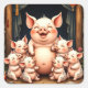 Pig Art – Mother & Piglets Square Sticker