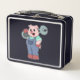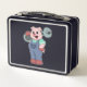 This is a standard metal lunchbox that appears to work just fine. We designed this box ourselves with an uploaded photo and custom text on the front and back. It looks absolutely beautiful except the front of the lunchbox is not centered like it shows in the photo. The print borders don't align with the inset flat part of the box where the preview photo online showed it perfectly centered in there. The back looks nice and centered though.