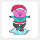 Pig at Ice skating with Ice skates & Hat Square Sticker
