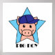 A cute pig cartoon wearing a blue baseball cap. Featured against a blue star background and the words 'Pig Boy'.