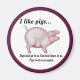 Fun illustration of a pink pig with a humourous message. Text says ... I like Pigs, Dogs look up to us. Cats look down on us. Pigs treat us as equals.