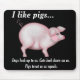 Fun illustration of a pink pig with a humourous message. Text says ... I like Pigs, Dogs look up to us. Cats look down on us. Pigs treat us as equals.