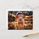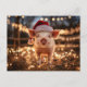 Postcard art featuring an adorable pig wearing a Santa hat and surrounded by Christmas twinkle lights.