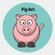 Pig Out Pink Pig Cartoon, Funny BBQ Hog Design Classic Round Sticker