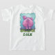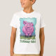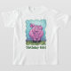 Animal Parade Pig Birthday Girl T-shirt is part of a line of cute animal Birthday Party personalised themed gifts, decorations, party favours, and much more created by ITD Animal Parade featuring our original art of a cute pig standing in a green, grassy field with a white fence and a blue textured sky inside a playful wavy green border painted by our talented kid's illustrator, Traci Van Wagoner. This whimsical farm animal from the front and back, complete with a cute curly pig tail is sure to bring a smile to pig lovers of all ages. Throw a barnyard animal pink pig party for your kid today with our coordinating pig fun and whimsical gift and party ideas. Have a snorting good party! Oink!