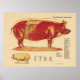 Pig anatomy chart created with vintage anatomical illustrations. Shows the muscles of the pig. Chart for the farm or veterinary office.