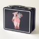 This is a standard metal lunchbox that appears to work just fine. We designed this box ourselves with an uploaded photo and custom text on the front and back. It looks absolutely beautiful except the front of the lunchbox is not centered like it shows in the photo. The print borders don't align with the inset flat part of the box where the preview photo online showed it perfectly centered in there. The back looks nice and centered though.