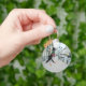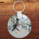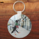 This keychain features my cartoon style image of a dapper Pigeon wearing a hat, whistling a merry tune and carrying an umbrella, walking along an urban street.