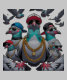 A bold streetwear design featuring a crew of cartoon pigeons styled as urban gangsters. These street-smart birds rock the latest hip-hop fashion with gold chains, durags, and designer shades, bringing attitude and humour to urban fashion. The cartoon style with white background creates a striking graphic that pops on fabric. This playful take on street culture combines urban attitude with avian swagger, perfect for those who appreciate both street art and witty fashion statements."