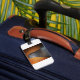 I was happy with the acrylic tag but it came with a thin leather strap to attach the tag to luggage (like a cat collar). I replaced the strap with a metal ring off of a key ring as the leather strap would come undone or break easily as luggage is sometimes handled without much care by airlines. Printing is great. Colours and positioning of the design I put on the tag were perfect. Very pleased.