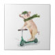 Cute piglet on a scooter wearing hat and scarf! Happy ride!
