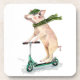 Cute piglet on a scooter wearing hat and scarf! Happy ride!