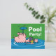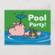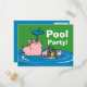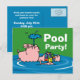 Funny pig wearing brightly coloured trunks, drinking lemonade and taking a leisurely swim make this design perfect for your next backyard pool party. Customisable text and background colour. On invitations, postage stamps, stickers and more! PinkInkArt original!