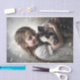 This cheerful decoupage tissue paper features a young girl embracing a happy piglet in a wildflower field, radiating innocence and rural charm. Perfect for farmhouse furniture projects, playful DIY crafts, or rustic nursery décor, this large-format tissue adds joy and personality to any creative surface.