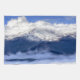 Pikes Peak with Fresh Snowfall and Clouds Tea Towel
