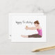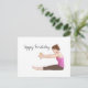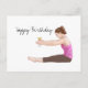 Pilates Spine Stretch exercise with cocktail Happy Birthday card.