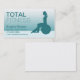 Illustration of a woman working out with a physio-ball in a blue colour with and lighter purple and white gradient background. Text is in a matching colour and with a modern, crisp font. Great looking business card for a Yoga, Physioball, Aerobics, Pilates, Personal trainer or anyone in the fitness industry.