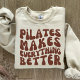 Embrace the uplifting power of Pilates with our Pilates Makes Everything Betterpiece! Perfect for Pilates enthusiasts, this design exudes positivity and style.