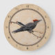 Detailed painting of a Pileated Woodpecker sitting on a tree branch, accented by a matching tan patterned background.