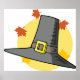 A pilgram hat with leaves around it. This design looks really effective on these Poster