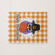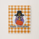 Pilgrim Owl on Orange Plaid - Happy Thanksgiving Jigsaw Puzzle