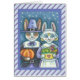 A PAIR OF PROPER PILGRIM BUNNIES THANKFUL FOR THEIR BOUNTY. HOLIDAY GREETING NOTE CARD/ENVELOPE Blank, Blue/Purple Stripe Border * Customise .....Look For Matching Items Susan Brack Design