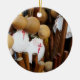 This ornament has a photograph of shells with the Cross of Saint James, which is often worn by pilgrims on the Camino de Santiago pilgrimage in Spain.