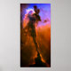 It shows a billowing tower of cold gas and dust, 9.5 light-years high, rising from a stellar nursery. Stars in the Eagle Nebula are born in these clouds of cold hydrogen gas, and the tower may be a giant 'incubator' for those newborn stars.