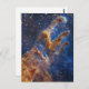 This stunning image taken by the JWST James Webb Space Telescope shows a brilliantly coloured view of the cosmic structure known as the Pillars of Creation. In this orientation you can imagine the image also shows a T-Rex dinosaur facing right with gaping mouth and small arm in the midst of the stars, and installer gas and dust.