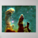 This is a reproduction of an awesome image of the Pillars of Creation taken by the Hubble Space Telescope. These are columns of cool interstellar hydrogen gas which are incubators of new stars. Knots within and on the surface of the columns are known as Evaporating Gaseous Globules and these can further condense into ever more dense gas clouds which alight into new stars with thermonuclear heat and light. These columns are 7000 light-years from earth and are in the Eagle Nebula. The image was released in November, 1995.
