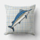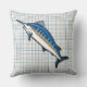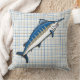 Not many fish are more incredibly beautiful than the blue marlin -- and not many fish are larger. The blue marlin is the largest of the Atlantic marlins and, seriously, one of the biggest fish in the world. As with some species, the female is often quite a bit larger than the male. Females can grow up to 14 feet long and can weigh more than 1,900 pounds, though the average runs more around 11 feet long and 300-ish pounds. A deep blue on top and silvery-white beneath, with a pronounced dorsal fin and a long, lethal, spear-shaped upper jaw (that some refer to as a bill), blue marlins are one of the most easily identifiable and recognisable fish in the world. Marlins are renown for their incredible stamina in a fight when they are hooked, which makes them a trophied favourite of big game fishermen. Though it can also be said of virtually any super big fish, I can't imagine there's much more thrilling to the avid angler than hooking one of these giants and seeing it break water in the fight. This design pays homage more to this majestic fish than the anglers that seek it. For this wonderful pillow, a single, blue marlin leaps from a sea of colour-coordinated plaid on either side, making it the perfect choice for your fishing lodge, beach house or "man cave".