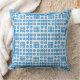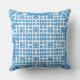 An attractive Throw Pillow or Cushion with a pattern of traditional Welsh Tapestry motifs in Bright Blue on a White background.This pattern will fit all sizes and shapes of pillows.