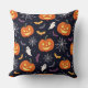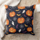 Create a seamless Halloween pattern featuring carved pumpkins, flying bats, spooky ghosts, and intricate spiderwebs. Use a dark colour palette with orange, black, and purple for a fun yet eerie atmosphere.