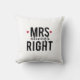 Pillow Mrs. always right text design with red hearts, gift for her, wedding gift