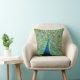 Peacock is displaying his green and blue tail feathers. Back of pillow is in royal blue to match colour of body feathers.