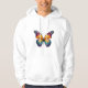 Realistic illustration of a butterfly with vibrant wings in shades of yellow, blue, purple, and pink, displaying fine details in textures and patterns. The butterfly appears with its wings fully open, isolated and in high resolution, highlighting its natural beauty and intense colors.