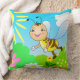 pillow with children's drawing, cartoon bee among the flowers with the sun