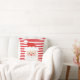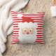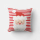 Christmas cotton pillow with a print of cute Santa Claus and red stripes.