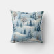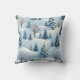 A pillow with a snowy winter background. White snow and trees are depicted.