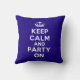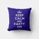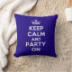 Based on the original Keep Calm and ... poster this cream and blue Keep Calm and Party On Pillow features a custom designed font that matches the original closely.
