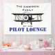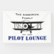 Design features a simple, minimalist sign which contains a black outline on the border, Family's Name, an image of a biplane aeroplane, an established date, and the text 'PILOT LOUNGE'. Perfect present for the pilot's office.