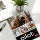 Design features 4 photos in the front and 1 in the back. The front cover also includes 'Pilot' Typography in a minimalist design, a name and the year. Customise it with your favourite photo memories, your name and year.