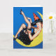 Pin-Up Girl dressed as a Witch sitting on The Moon Halloween Greeting Card, blank inside so you can personalise.